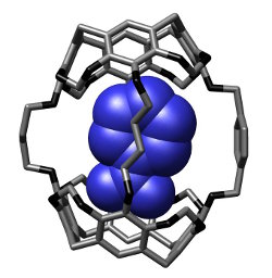 Для начала вспомним одного из трех лауреатов Нобелевской премии по химии 1987 года Дональда Джеймса Крама, который, развивая идею комплексов «гость-хозяин», создал новый тип молекул, карцеранды — органическая молекула представляет собой «клетку», «карцер», внутри которого заключена другая молекула, будь то большой атом инертного газа или, скажем, нитробензол (рис.1).