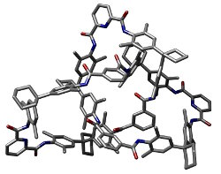 Кроме того, появились новые типы катенанов: претцеланы, в которых кольца продеты друг в друга, но еще и соединены молекулярным мостиком. Также есть «катенаны в форме наручников» (это вполне официальное название — handcuff-shaped catenanes). Почему они так названы, можно понять, посмотрев на их топологию.
