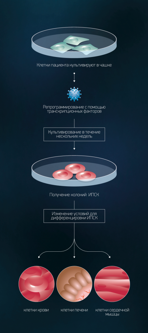 Теоретически, стволовые клетки могут восстановить практически любой орган, поэтому неудивительно, что это направление активно развивают по всему миру. Понятен и интерес к репрограммированным, или, как еще их называют, индуцированным плюрипотентным стволовым клеткам (ИПСК) — они не только избавляют от необходимости использовать эмбрионы, их можно получать непосредственно из клеток самих пациентов.