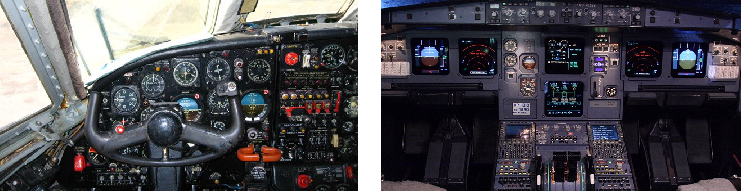 Кабина АН-12 (слева) и Airbus-320 (справа). Источник: avsim.su
