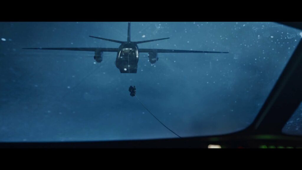 В кино: У АН-12, в котором находится Зинченко и часть спасенных людей, заканчивается топливо. Гущин принимает решение натянуть между двумя самолетами трос и переправить по нему людей.
