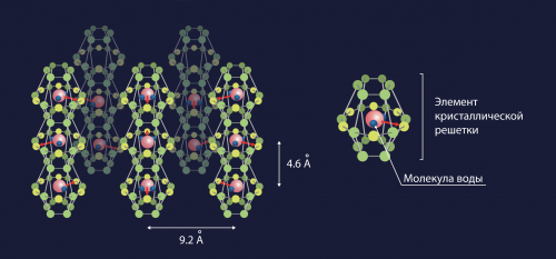кристаллы берилла с водяными молекулами внутри нанопор. Изображение предоставлено авторами статьи