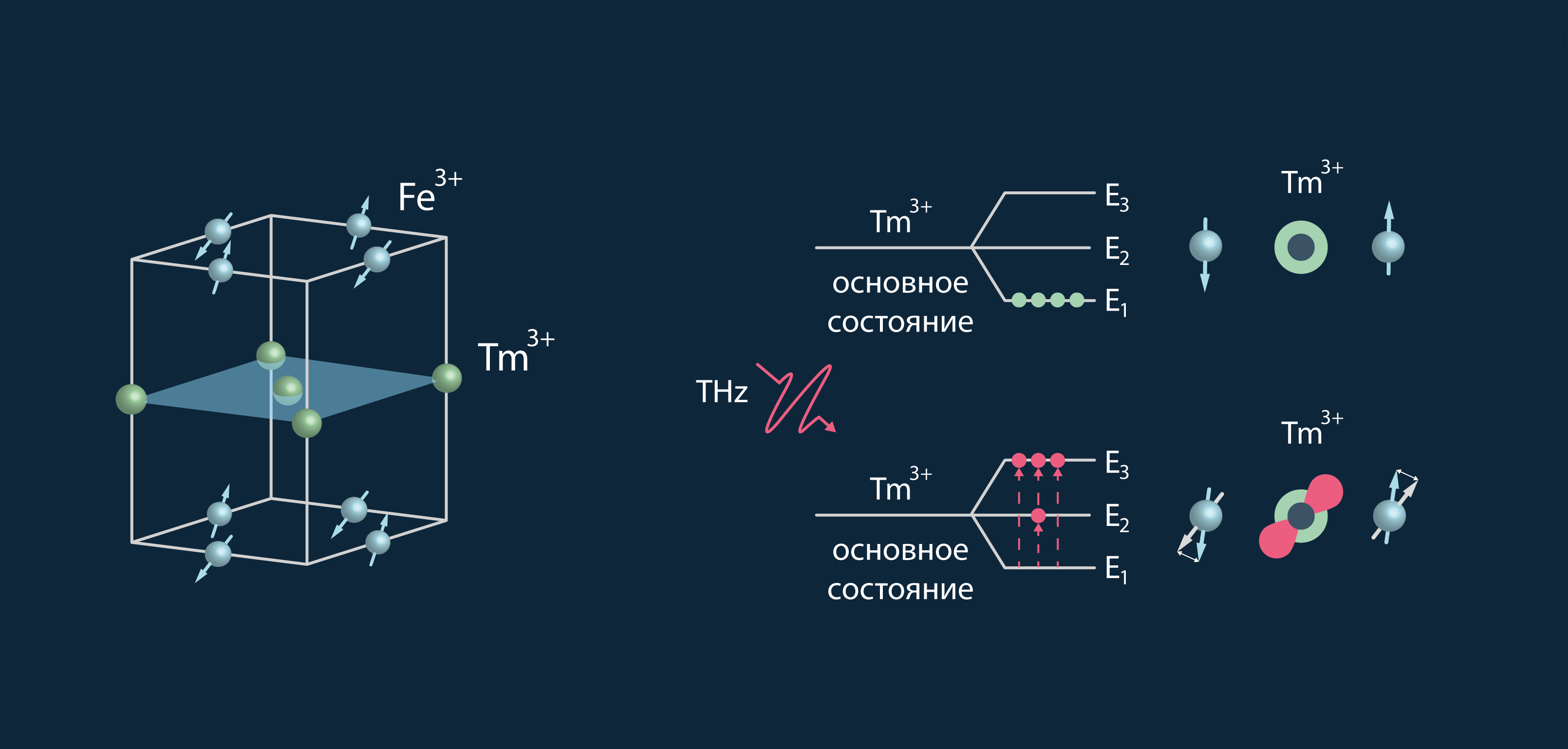 Однако эксперимент показал, что терагерцовое излучение переводит ионы тулия в возбужденное состояние и меняет магнитные свойства и ионов железа, и ионов тулия, причем его воздействие почти в 10 раз сильнее внешнего магнитного поля. Таким образом, исследователи получили очень быстрый и действенный метод «перемагничивания» — хорошую «базу» для создания сверхбыстрой памяти.