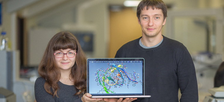 Сотрудник Лаборатории структурной биологии рецепторов, сопряженных с G белком, МФТИ Сергей Грудинин, аспирантка МФТИ Мария Кадукова и «обученный» ими компьютер