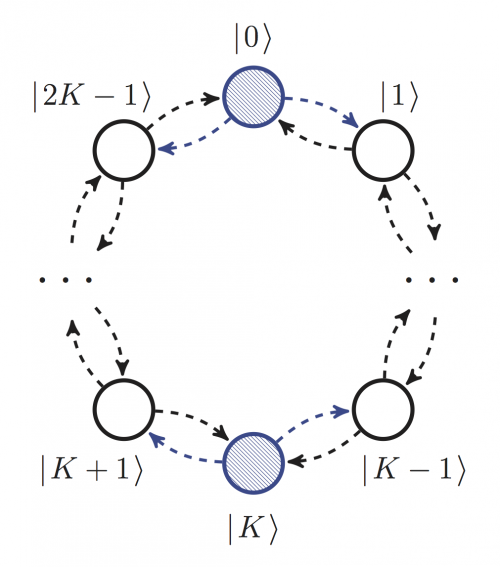 Алексей Мельников и Леонид Федичкин предложили запустить в кольцо из квантовых точек два электрона, чтобы создать между ними квантовую сцепленность и получить сразу два связанных кудита. Квантовая сцепленность, или запутанность, достигается за счет того, что одинаково заряженные частицы отталкиваются друг от друга. Можно получить и больше связанных кудитов в том же объеме полупроводника, если запускать в него еще больше электронов и создавать из квантовых точек более извилистые пути. Преимуществом такого способа является то, что квантовые блуждания частиц — это естественный процесс. Однако соседство одинаковых электронов в одной структуре создает дополнительные сложности, которые до этого преодолены не были.