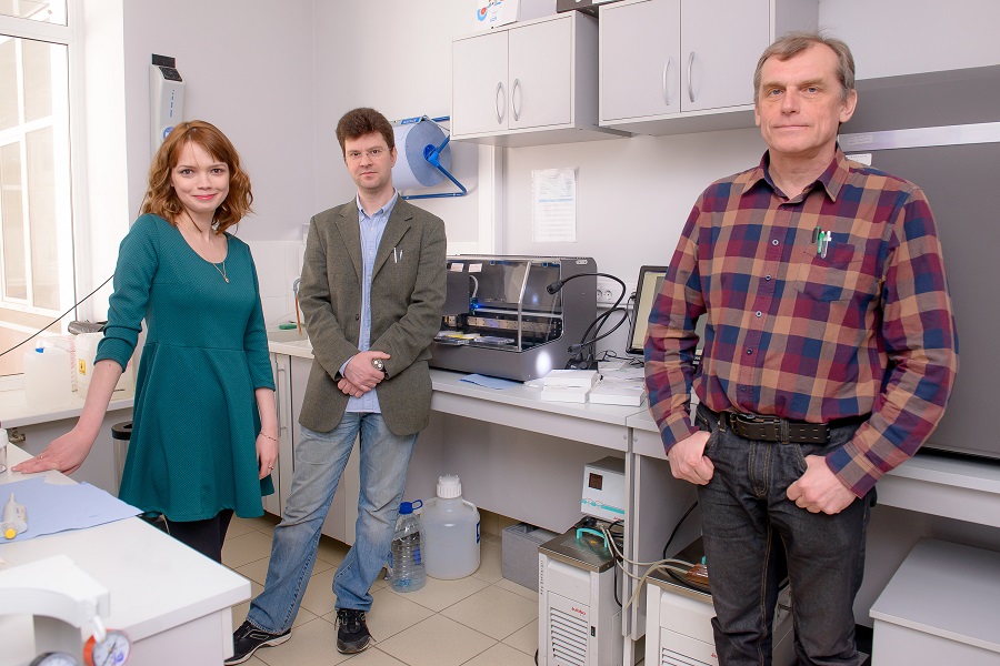 Алина Ремеева, во время работы над проектом сотрудница Institute of Complex Systems (ICS), ICS-6: Structural Biochemistry, Research Centre Jülich; Валентин Борщевский, с. н. с. Лаборатории перспективных исследований мембранных белков; Пётр Константинович Утробин, инженер Исследовательского центра молекулярных механизмов старения и возрастных заболеваний (слева направо). Фото: Евгений Пелевин, пресс-служба МФТИ