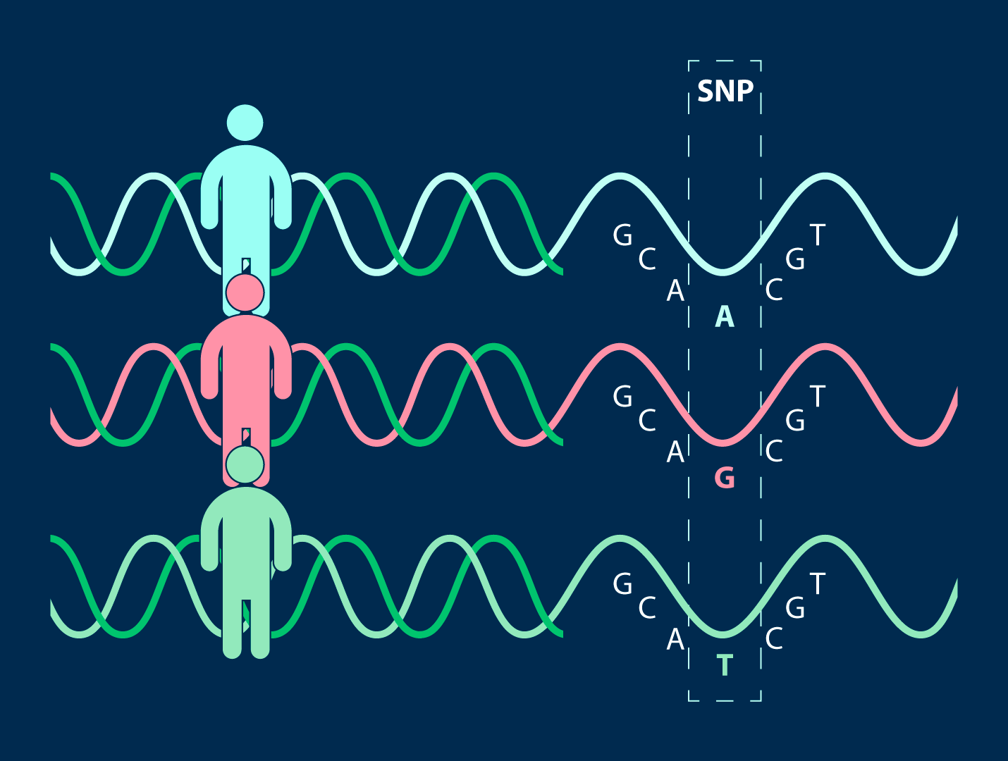 Когда две последовательности ДНК отличаются на одну букву, то есть на один нуклеотид (A, T, G или С), это называется однонуклеотидным полиморфизмом, или SNP (англ. Single nucleotide polymorphism). Конкретный вариант, имеющийся у конкретного человека, называется «аллель»