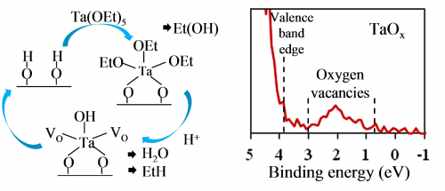 Этапы химических реакций при нанесении пленки оксида тантала с дефицитом кислорода и результаты их анализа методом рентгено-фотоэлектронной спектроскопии
