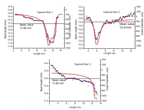 Для решения второй задачи — сохранения поляризации — авторы сделали оболочку волокна анизотропной: внутренняя часть оболочки имеет различную ширину и высоту (эллиптическую форму), и это приводит к тому, что скорость распространения света с различным направлением колебаний поля отличается. Процесс перекачки из одной поляризационной моды в другую при такой структуре волокна практически сходит на нет. В работе ученые показали, что длина пути света через волокно, при которой колебания разных поляризаций оказываются в противофазе, — так называемая длина поляризационных биений — зависит от диаметра, и чем диаметр больше, тем меньше эта длина. Данная длина соответствует полному обороту состояния поляризации внутри волокна. То есть при вводе линейно поляризованного света в волокно свет станет снова линейно поляризованным после прохождения именно этой длины по оптическому волокну. Возможность измерения данного параметра сама по себе является свидетельством сохранения поляризации в волокне.