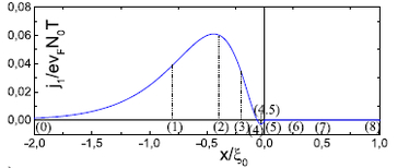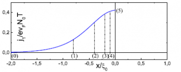 Во-вторых, определено, что разным типам границы соответствуют разные профили распределения спонтанного тока: если граница идеальная, то спонтанный ток постепенно нарастает по мере приближения к границе на характерной длине порядка длины когерентности 0.