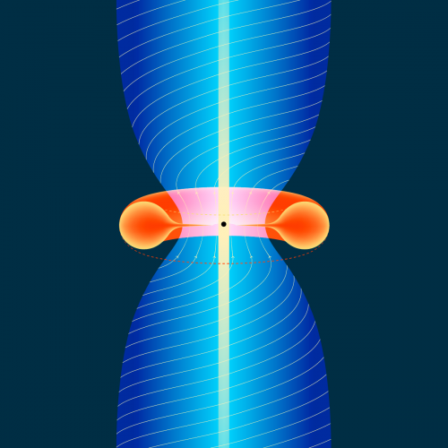 В лаборатории фундаментальных и прикладных исследований релятивистских объектов Вселенной МФТИ разработали модель, позволяющую проверить одну из гипотез, описывающую взаимодействие сверхмассивных черных дыр в центрах галактик с испускаемыми ими струями — джетами. Модель позволяет по измеренному магнитному полю джета предсказать потери вращательной энергии испускающей его черной дыры. Работа опубликована в журнале Frontiers in Astronomy and Space Sciences.