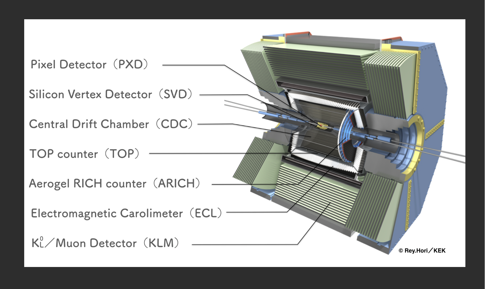 Усовершенствованный детектор Belle-II на суперколлайдере SuperKEKB был создан международной коллаборацией, включающей более 750 ученых из 25 стран. В отличие от предыдущего детектора Belle за счет огромной светимости коллайдера SuperKEKB, превышающей светимость коллайдера KEKB в 40 раз, детектор Belle-II позволяет регистрировать и восстанавливать события с рекордной частотой. За 10 лет работы будет накоплено более 50 миллиардов событий, содержащих пары прелестных мезонов, что в 50 раз превысит весь объем данных проекта KEKB/Belle.