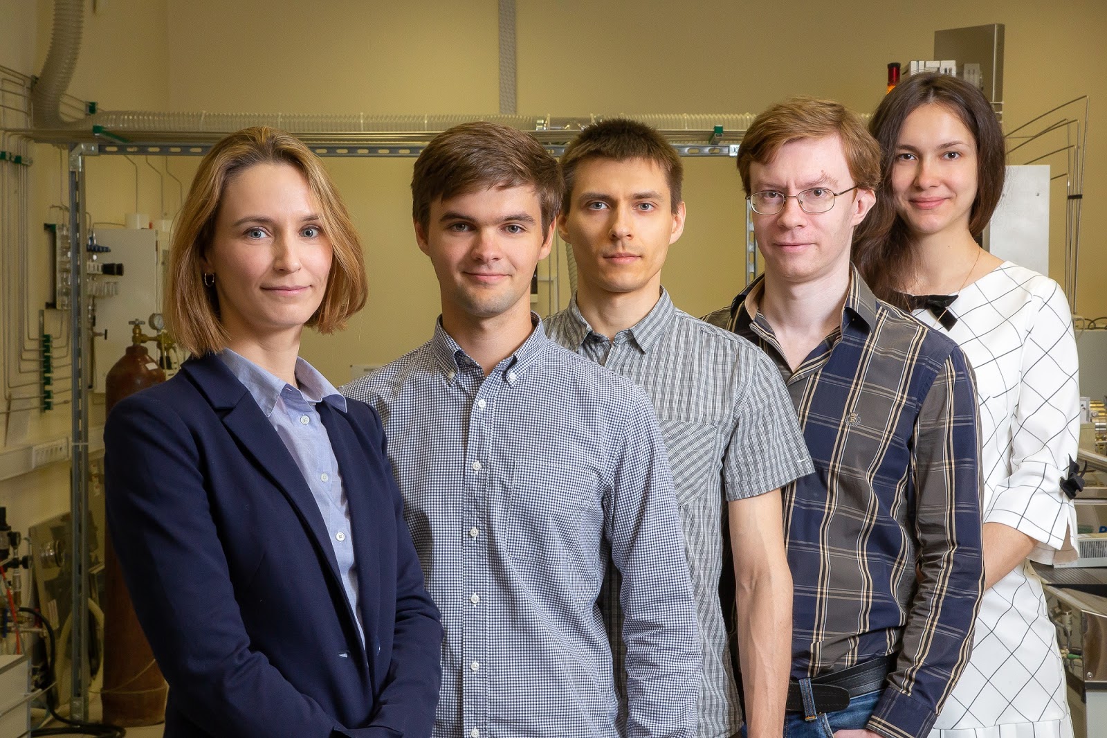 Ведущий автор исследования, старший научный сотрудник лаборатории нейровычислительных систем МФТИ, к.ф.-м.н. Анастасия Чуприк и команда молодых учёных, участвовавших в работе (слева направо: Роман Киртаев, Сергей Зарубин, Максим Спиридонов, к.ф.-м.н. Анна Черникова). Фотограф: Евгений Пелевин, пресс-служба МФТИ