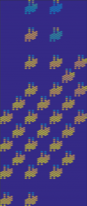 Каждая группа точек соответствует одному электроду. Цвет точки группы показывает, насколько похож сигнал, получаемый этим электродом на сигнал электрода, соответствующего положению точки. Более желтый цвет означает более высокое сходство, синий означает низкое. Такое фрактальное представление сходства сигналов показывает, что наиболее разнообразные сигналы дают верхние электроды. Сигналы центральных электродов более похожи. Предоставлено авторами исследования