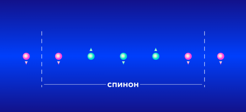 Характеристикой магнона является то, что спиновое состояние равно 1. То есть это целочисленное возбуждение, поскольку в нем всегда участвуют два спина: один перевернулся — он сразу же перевернет своих соседей. Спинон же, напротив, нецелочисленная квазичастица — это возбуждение со спином ½ и зарядом 0.[/columns]