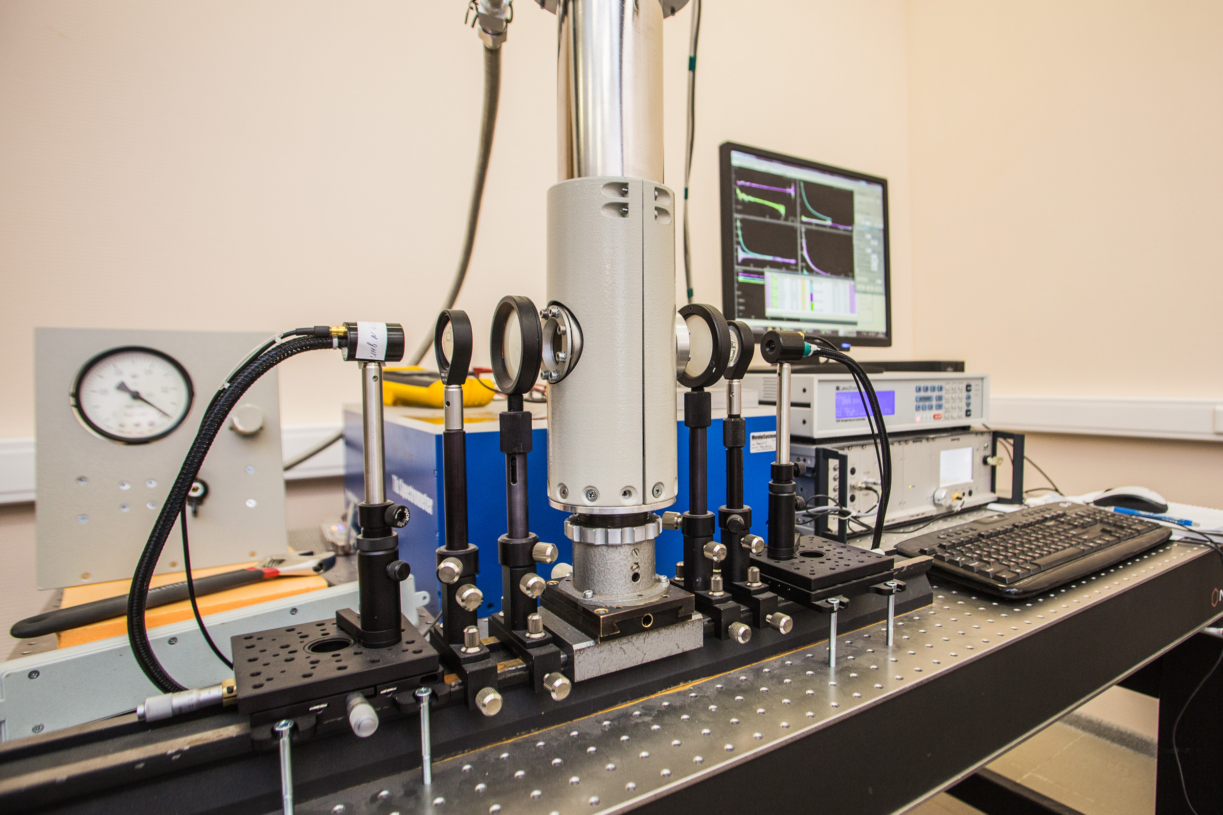 Оптический стол в лаборатории нанооптики и плазмоники