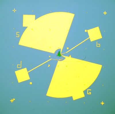 «Фотодетектор на основе графена будет представлять собой не просто фоточувствительную плоскость из этого материала, его устройство сложнее. Мы работаем с транзисторными фотодетекторами, где у графена есть два электрических контакта — сток и исток, а также управляющий контакт — изолированный затвор. Сток и исток выводятся на антенну, напоминающую галстук-бабочку, в узле которой находится графен. Задача этой антенны — сфокусировать падающее излучение на графен. Под действием излучения между этими двумя контактам возникает фотоотклик — постоянное напряжение. Так выглядит наиболее перспективная конструкция прибора», — продолжает Дмитрий Свинцов, — «В графене существует множество механизмов фотодетектирования, или превращения света в ток. Некоторые из них присущи только графену и не реализуются в привычных материалах — кремнии, германии и арсениде галлия. Обычно фотодетектирование происходит при растаскивании электрон-дырочных пар, которые образуются при освещении полупроводникового p-n-перехода. В графене к этому добавляются сильные термоэлектрические эффекты. В исследуемой нами схеме транзисторного фотодетектора дополнительный фототок возникает из-за асимметричного эффекта поля. Важно, что все три механизма детектирования работают сообща и тянут ток в одну сторону, что мы и показали в недавней работе».