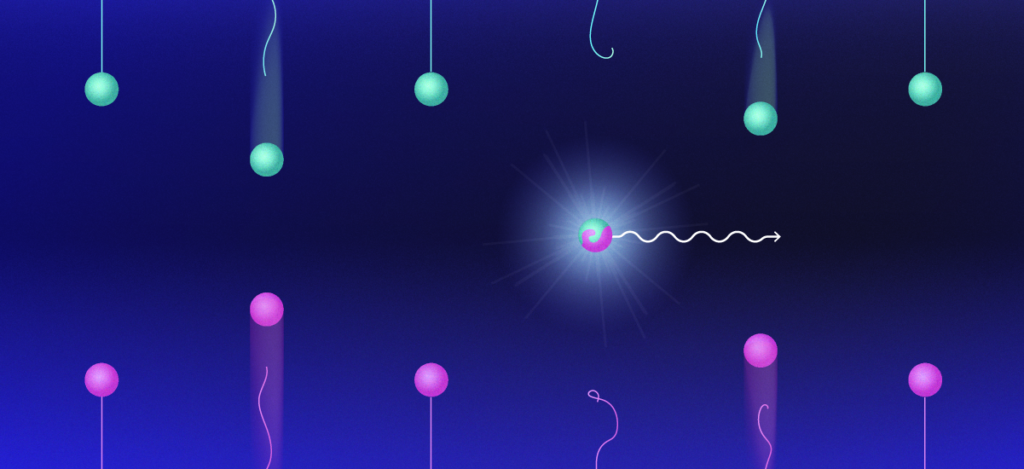 Излучение света при взаимном уничтожении электрона и дырки — принцип работы полупроводникового лазера. Иллюстрация: Елена Хавина, пресс-служба МФТИ
