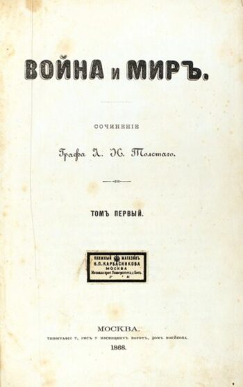 Л.Н. Толстой «Война и мир. Том первый». Типография Т. Рис у Мясницких ворот, 1868 год. Источник: anticvarium.ru