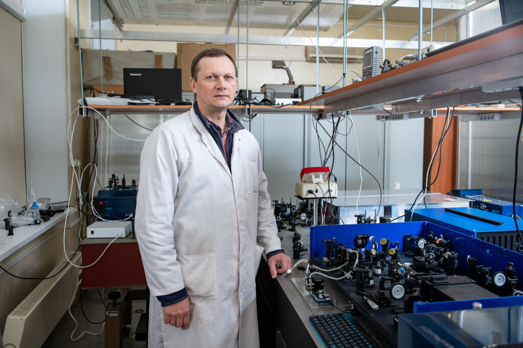 Игорь Крюков рядом с установкой по фемтосекундной спектроскопии молекул
