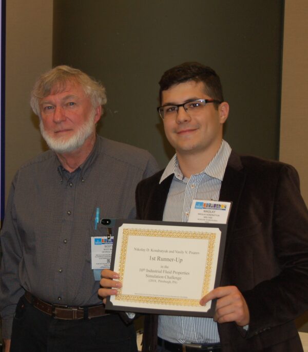 Скотт Бейр, организатор X Конкурса по моделированию свойств промышленных жидкостей и научный сотрудник Московского физико-технического института Николай Кондратюк, который занял второе место. Фото с сайта конкурса: fluidproperties.org