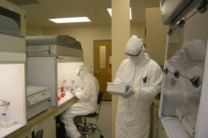 Пробоподготовка древних образцов, выделение ДНК. Работа в скафандрах в чистых комнатах в европейской лаборатории. Источник: Лаборатория исторической генетики, радиоуглеродного анализа и прикладной физики МФТИ.