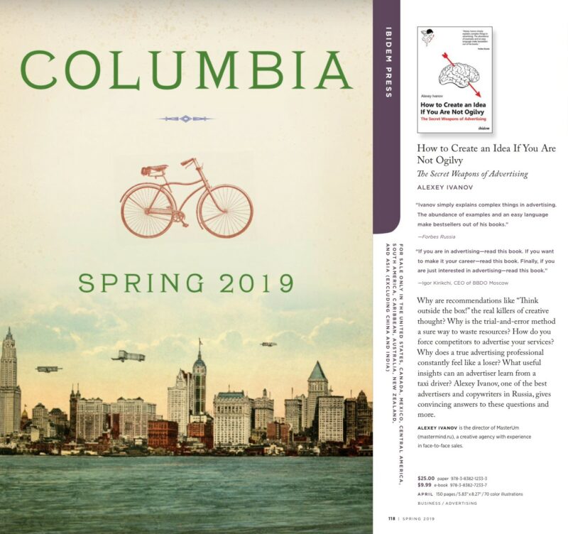 Книга How to Create an Idea If You Are Not Ogilvy отобрана для каталога одного из самых престижных издательств США — издательства Колумбийского университета (Columbia University Press)