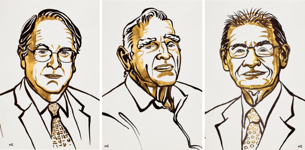 Ноебелевские лауреаты по химии 2019 (слева направо): Стенли Виттингхем, Джон Гуденаф, Акира Йосино. © Niklas Elmedhed / Nobel Media