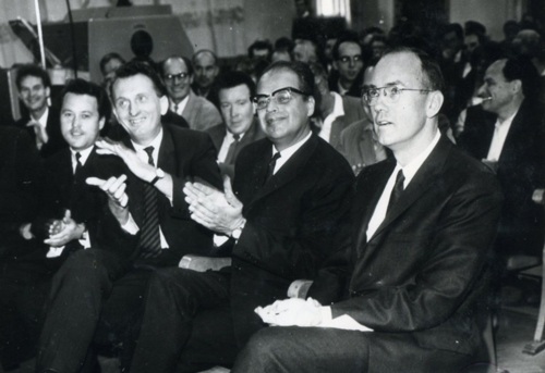 Чарльз Таунс посещает ФИАН 13 ноября 1965 года (Слева направо: А. М. Прохоров Н. Г. Басов и Ч. Таунс)