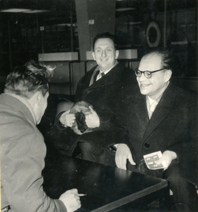 В аэропорту Шереметьево: Николай Басов и Александр Прохоров дают интервью Николаю Железнову перед вылетом в Стокгольм на вручение Нобелевской премии