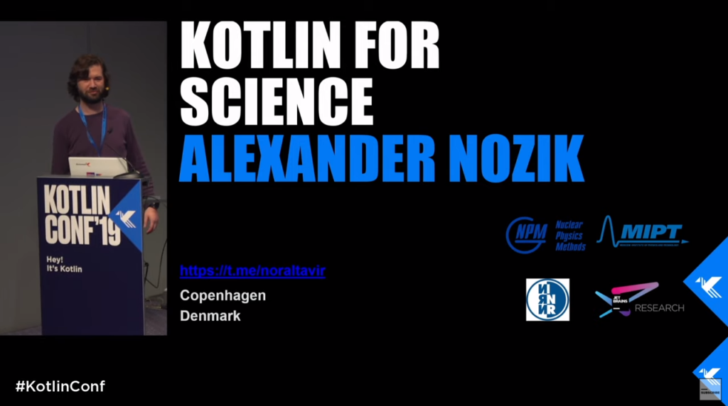 С 4 по 6 декабря в Копенгагене прошла ежегодная конференция KotlinConf, посвященная языку программирования Kotlin и ставшая крупнейшей в истории развития языка. На конференции был представлен доклад Александра Нозика, заместителя заведующего лаборатории методов ядерно-физических экспериментов МФТИ, посвященный использованию языка Kotlin в экспериментальной физике и других научных исследованиях. Запись выступления будет доступна на канале JetBrains TV после обработки.