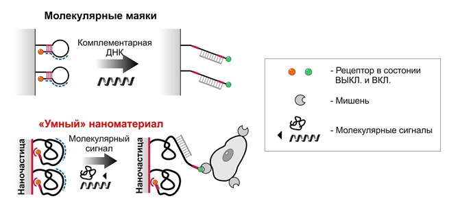 Сравнение молекулярных маяков и разработанных авторами исследования умных материалов. Предоставлено авторами исследования