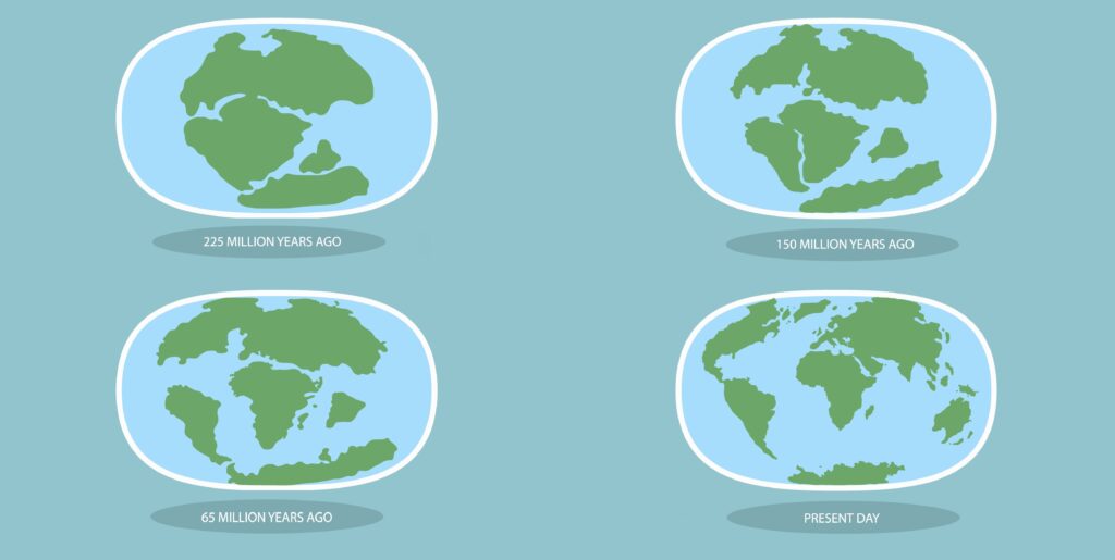 Геологическая эволюция Земли описывается на основе современной концепции тектоники литосферных плит. Литосфера — твердая оболочка Земли — включает в себя земную кору и подстилающие части верхней мантии. Литосферные плиты движутся по пластичному слою мантии, что приводит к образованию различных геологических структур — гор, хребтов, океанов и морей.