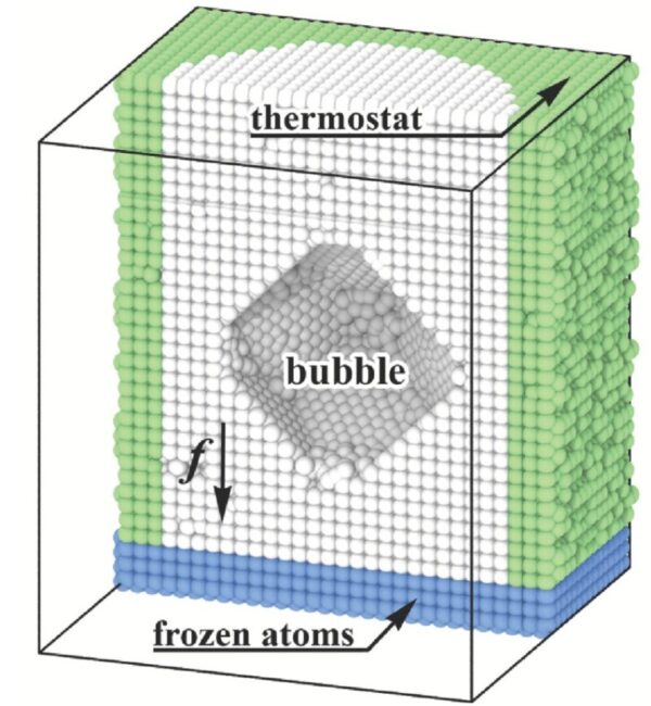 [columns size=»2/3″ last=»false»]Александр Антропов, один из авторов работы, аспирант МФТИ, рассказал: «Для того, чтобы нанопузырек перемещался, необходимо, чтобы атомы кристаллической решетки переходили с одной его стороны на другую. Можно провести аналогию с движением пузырька воздуха в воде, однако в твердом теле этот процесс протекает гораздо медленнее. В ходе работы над проектом мы наглядно продемонстрировали, что есть еще одно отличие: поры в кристаллической решетке принимают форму многогранников, и устойчивые грани тормозят процесс диффузии. В 70-х годах прошлого века возможность такого эффекта была предсказана теоретически из общих соображений. Наш метод позволяет получить количественные результаты для конкретного материала».[/columns]