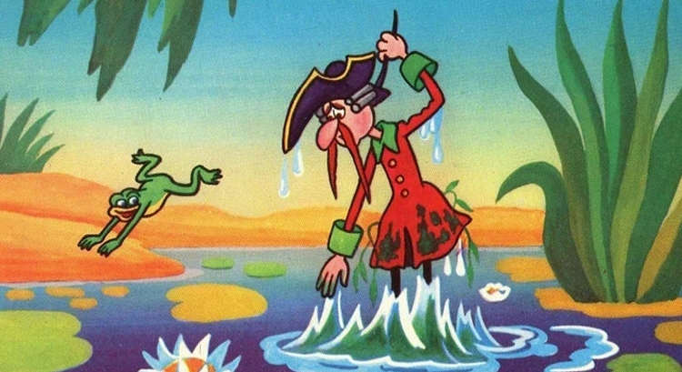 Иллюстрация нарушения третьего закона Ньютона. Описанное Мюнхаузеном событие было не результатом действия коллективной системы, поэтому к эксперименту ученых отношения не имеет. Источник: «Приключения Мюнхаузена», мультипликационный фильм.