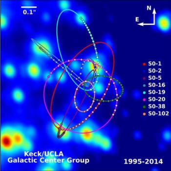 Таким образом, ученые смогли точно отслеживать движение звезд S-кластера. S2 делает полный оборот вокруг центра Галактики за 15,8 лет, что весьма быстро (для сравнения, Солнцу требуется примерно 250 миллионов лет), и в период с 1992 по 2008 год астрономам удалось проследить ее полную орбиту.