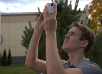 — Еще одна интересная задача турнира — «Оптический компас». Предлагалось в условиях сильной облачности определить стороны света по поляризации лучей Солнца. Мы создали установку, которая могла определить широту вашего местонахождения, время и даже дату. Для этого устройство подключалось к телефону и запускалась видеосъемка, с помощью которой мы получали результат буквально за десять секунд.