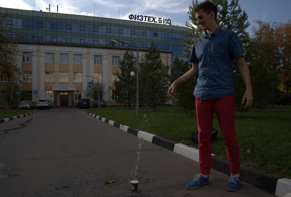 — Задача «Кумулятивная пушка» состояла в том, чтобы изучить процесс падения шарика в пластиковом стакане воды. Подскок шарика происходит в результате кумулятивного эффекта: образуется струя воды, которая толкает тело.