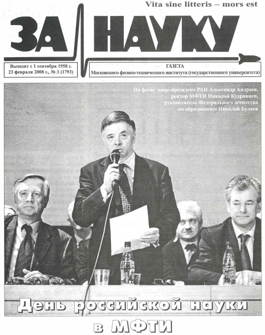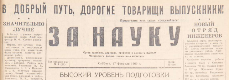 Сегодня, 8 февраля, в День российской науки мы запускаем рубрику «В этот день», посвященную 75-летию МФТИ. Здесь мы будем публиковать подборки самых ярких материалов, выходивших в газете «За науку» в разные годы.