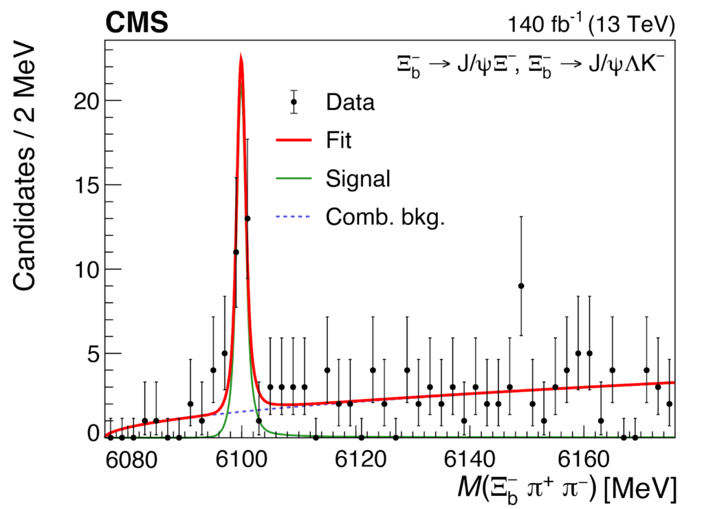 Инвариантная масса отобранных Ξb–π+π– кандидатов. Пик соответствует новой частице с массой 6100,3 ± 0,6 МэВ @ CERN, for the benefit of the CMS Collaboration