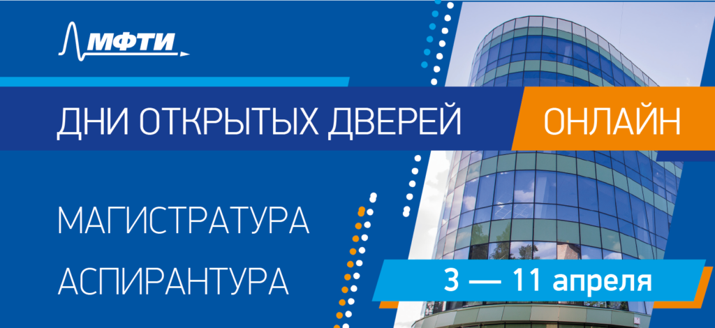 3 апреля в 12:00 состоится первое мероприятие в рамках Дня открытых дверей для желающих поступить в МФТИ в магистратуру или аспирантуру. Все встречи состоятся в онлайн-формате. Участники смогут узнать о ключевых научных направлениях и перспективных прикладных исследованиях, в которые вовлечены многие студенты.