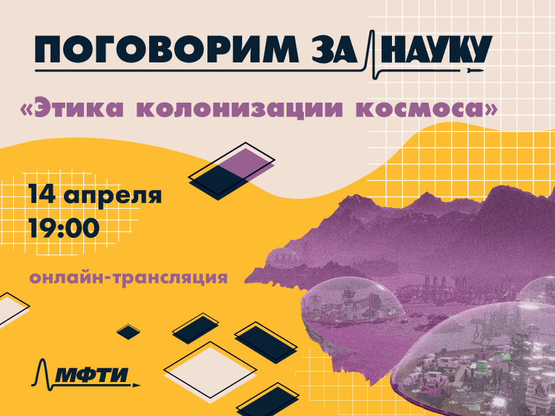 14 апреля в 19:00 журнал «За Науку» приглашает принять участие в первой онлайн-трансляции «Поговорим За Науку» на тему «Этика колонизации космоса». Гостями встречи станут Александр Родин, руководитель лаборатории прикладной инфракрасной спектроскопии МФТИ, к.ф.-м.н. и профессор Келли Смит, руководитель департамента философии и религии Университета Клемсона, США, Da.D. Они выскажут свои взгляды на роль ценностей в освоении космического пространства и смогут ответить на интересующие участников вопросы.