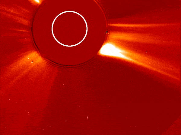 Изображения двух мчащихся к Солнцу комет 12 июня 1998 года были получены с помощью широкоугольного спектрометрического коронографа (LASCO) на борту спутника НАСА солнечной и гелиосферной обсерватории. Источник: Courtesy of Solar and Heliospheric Observatory