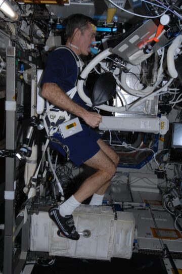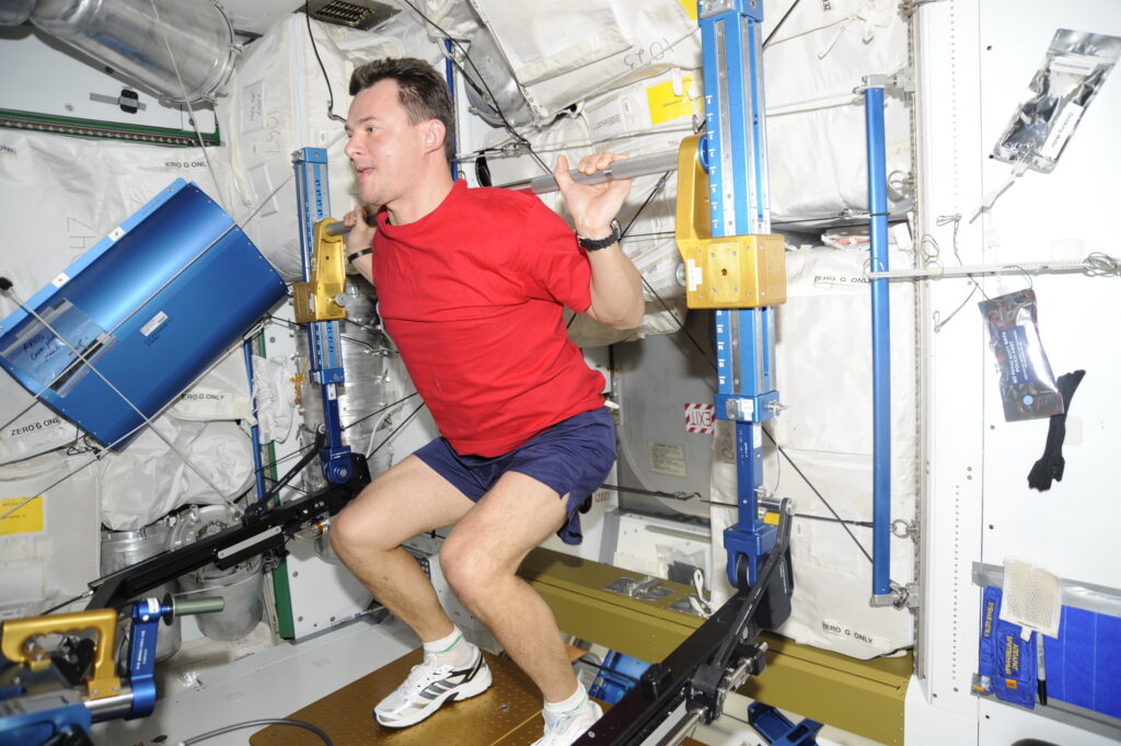 Очень серьезное воздействие на опорно-двигательный аппарат космонавтов оказывает невесомость. В частности, деминерализация костей (уменьшение костной массы на 1–2% в месяц) может приводить к тяжелым травмам и образованию камней в почках. Кроме того, в отсутствие гравитации происходит атрофия мышц, прежде всего двигательного аппарата. Именно поэтому космонавты во время полета обязаны заниматься различными видами аэробных и силовых упражнений, имитирующих земные условия.