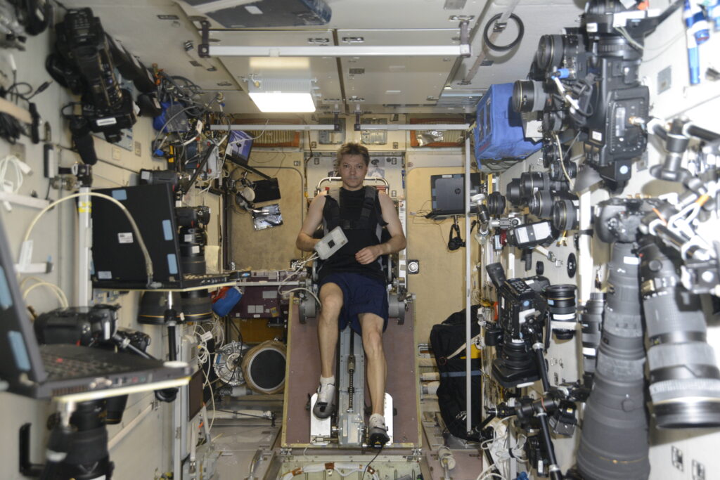 Тренировка на велоэргометре Фото Олег Кононенко. Источник: Роскосмос