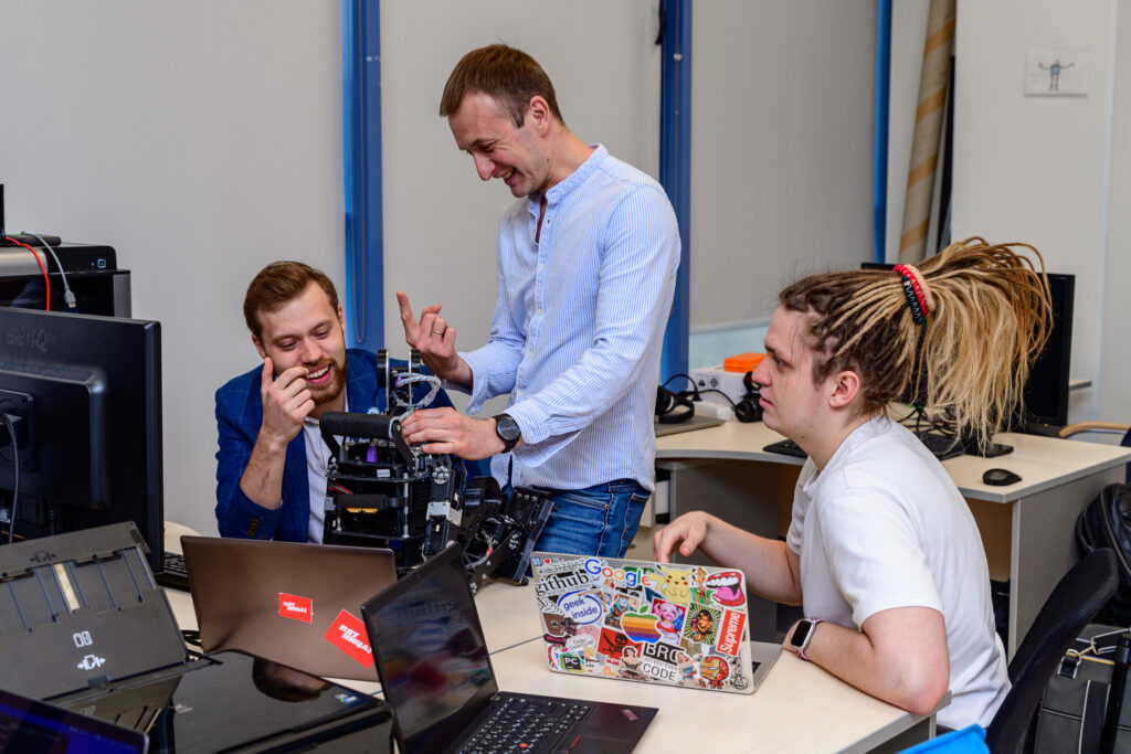 В финале наша команда встретилась с иранской MRL-HSL. Иранские роботы бегали гораздо быстрее, но при этом чаще падали. Также сила удара была на стороне противника, так как их роботы выше и больше, большой рычаг – сильный удар. Наша команда предпочитала игру в пас, одновременно были задействованы все три робота, в то время как у соперников играл только один из роботов. Во второй половине игры у нас было 3-4 прекрасных выхода один на один. И преимущество оказалось на нашей стороне: команда МФТИ отвоевала статус Чемпиона мира по робофутболу со счетом 2:1. Трансляцию можно посмотреть на Twitch по ссылке со времени 1:06:10.