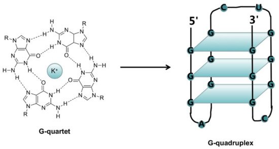 Несколько G-квартетов составляют G-квадруплекс. Источник: Molecules