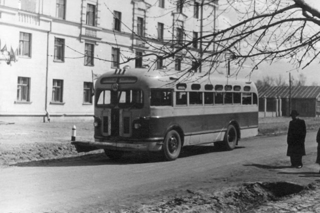 1958 год. Ул. Первомайская, остановка автобуса напротив общежития МФТИ №2