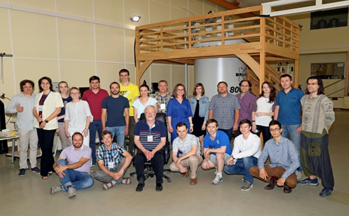 Сотрудники отдела структурной биологии, 2019 год, на фоне пятиметрового сверхпроводящего магнита ЯМР-спектрометра. Все молодые сотрудники кафедры на фото, за исключением четырех человек, ─ студенты либо выпускники МФТИ. Заведующего отделом Александра Арсеньева можно найти в центре композиции