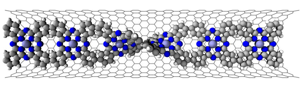 Исследователи получили сложную структуру, состоящую из углеродных нанотрубок и магнитных полос шириной менее одного нанометра внутри. Продемонстрированный ими материал открывает возможности для разработки разнообразного класса защищенных низкоразмерных магнитных материалов для применения в органических спинтронных, магнонных и квантовых устройствах.